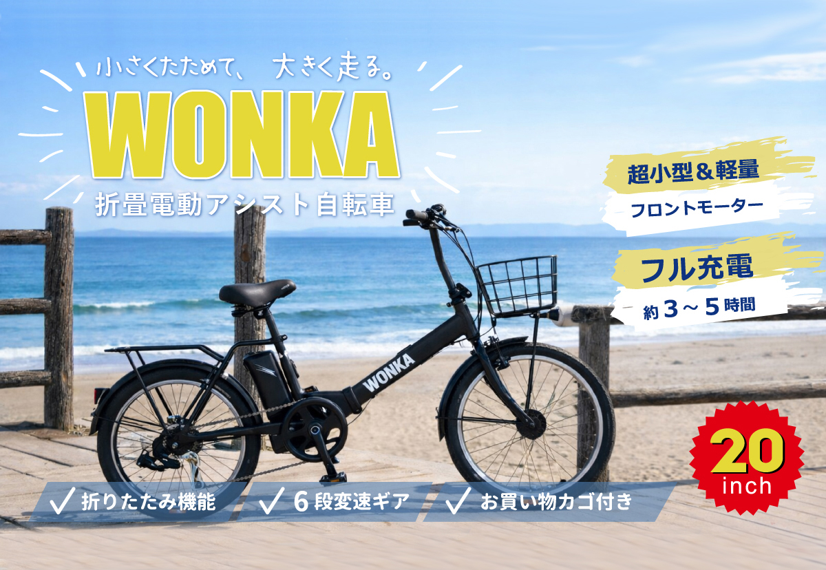 小さくたためて大きく走る☆ウォンカ折畳電動アシスト自転車 20インチ 外装6段変速